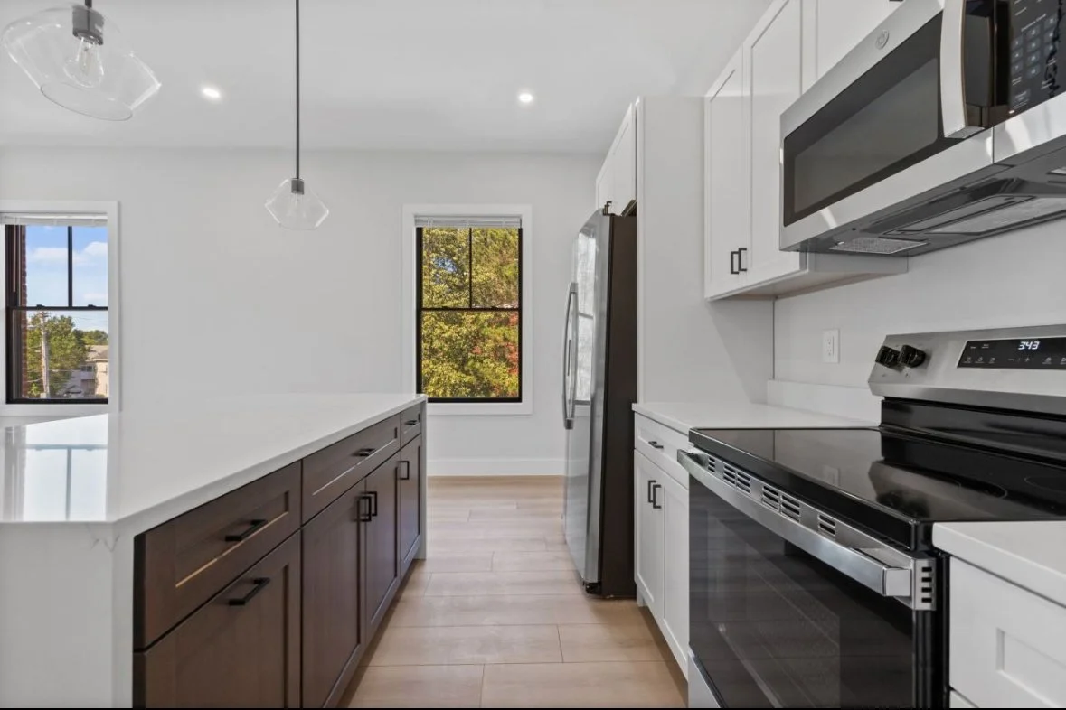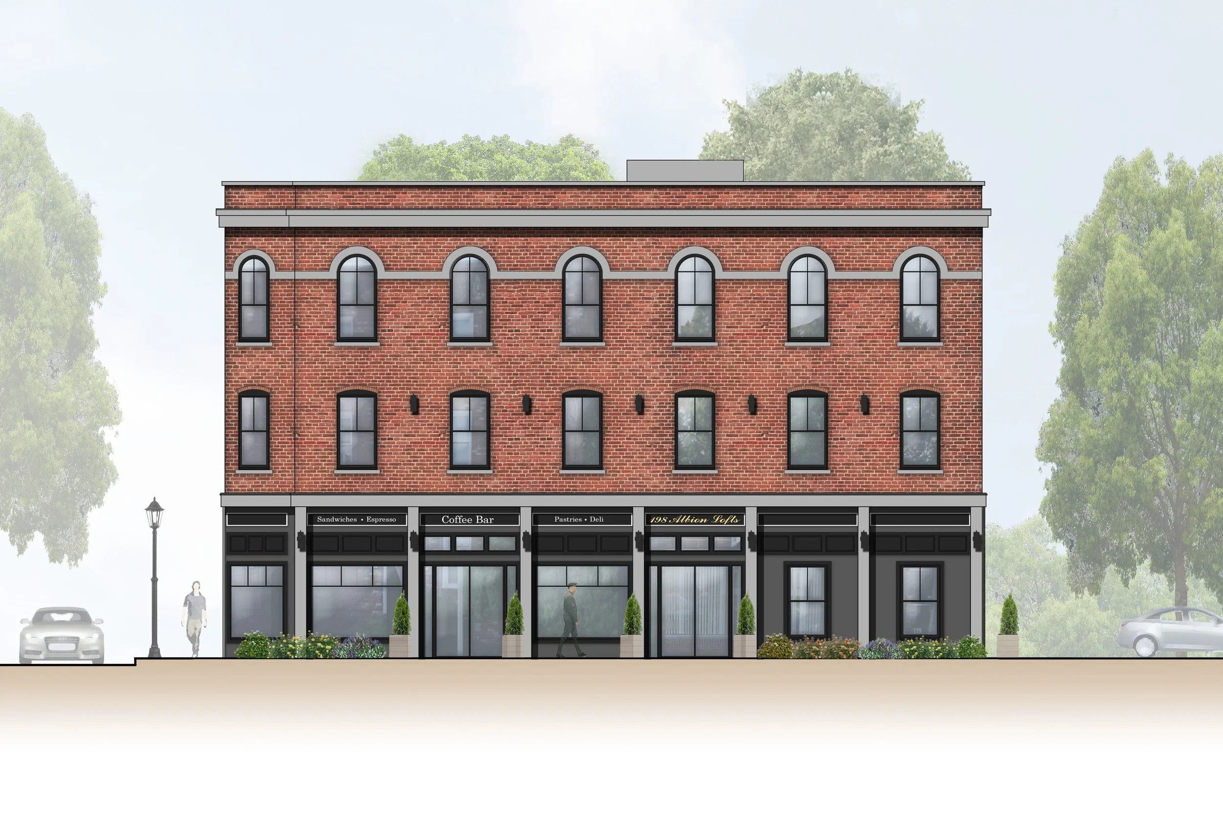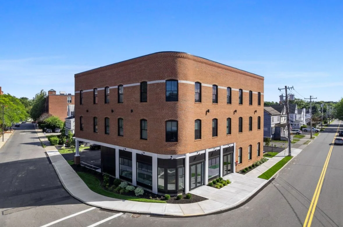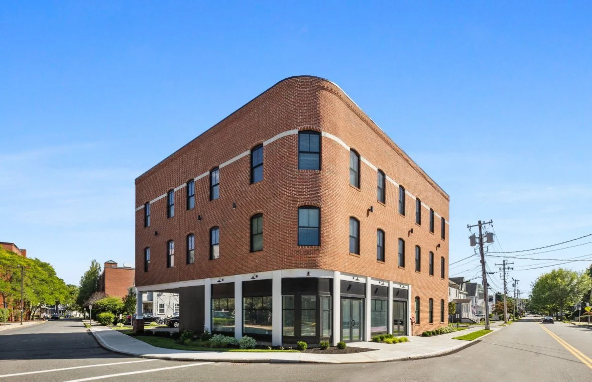 Value engineering often feels like a designer’s nightmare, but in this downtown mixed-use building, it served to refine rather than diminish the vision. Nestled between the historic urban fabric and smaller single-family homes, the building's brick façade, black-framed windows, and arched tops blend seamlessly with the surrounding architecture.